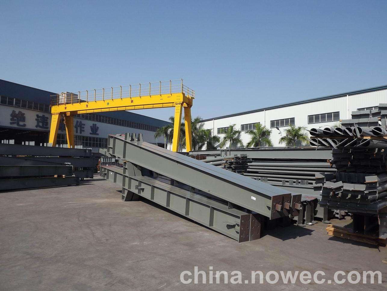 条状单元一般沿长跨方向分割,其宽度约为1~3个网格,其长度为l2或l2/2(l2为短跨跨距)。块状单元一般沿许昌网架平面纵横向分割成矩形或正方形单元。每个单元的重量以现有起重机能胜任为准。条(块)与条(块)之间可以直接拼装,也可空一网格在高空拼装。由于条(块)状单元是在地面拼装,因而高空作业量较高空散装法大为减少,拼装支架也减少很多,又能充分利用现有起重设备,故较经济。这种安装方法适用于分割后网架的钢度和受力状况改变较小的各类中小型网架,如两向正交正放四角锥、正放抽空四角锥等网架。